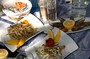 Moules gratinées, poêlée de seiches, carpaccio de thon, fritures, beignets de courgettes